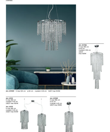 PADANA LAMPADARI Sospensione media TRESOR metallo cromo e cristalli al piombo