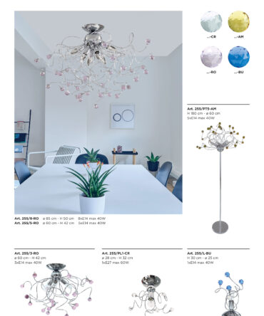 PADANA LAMPADARI Lumetto MARILYN metallo cromo e vetro lavorato colori vari