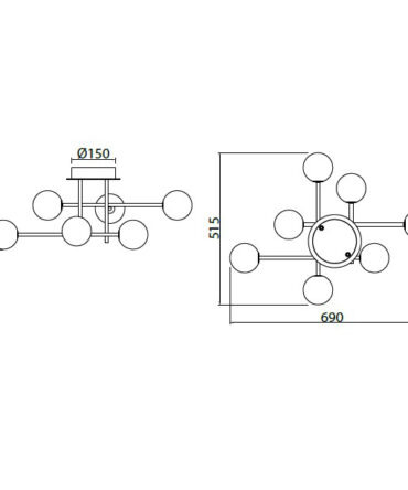 MANTRA CAPUCCINA Plafoniera media a 6 luci nero D. 90 cm H. 29,2 cm