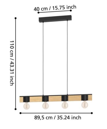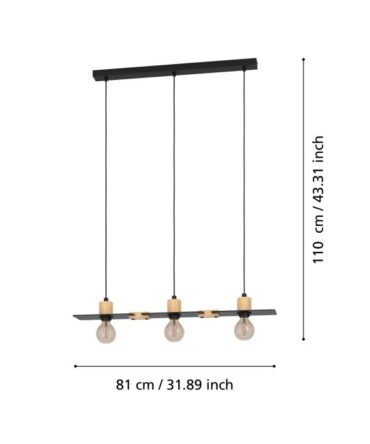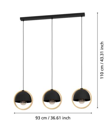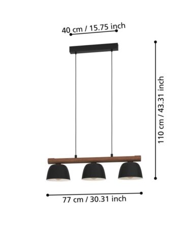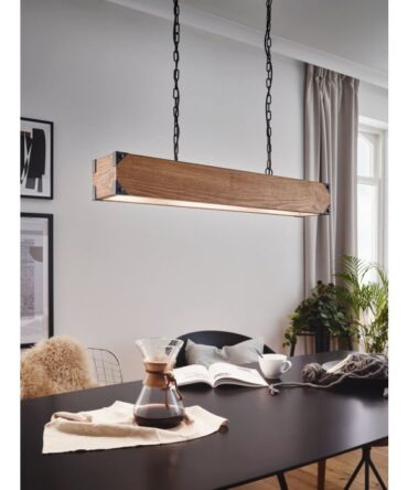 EGLO Sospensione CARLTON con struttura in metallo nero e legno marrone, H. 107 e L. 145,5 cm