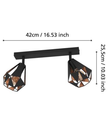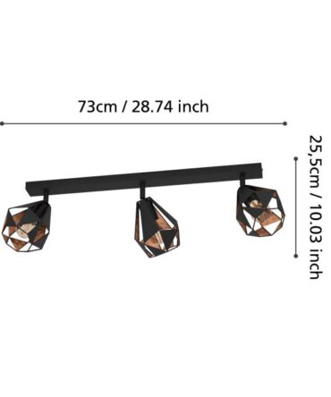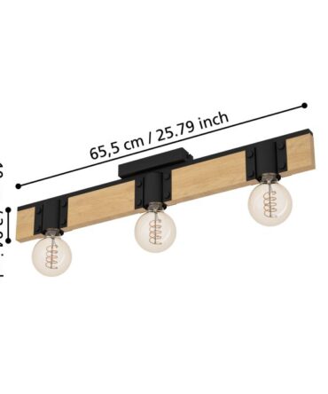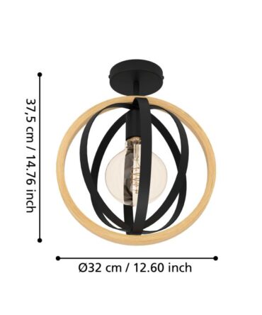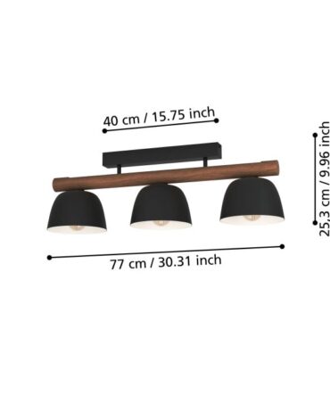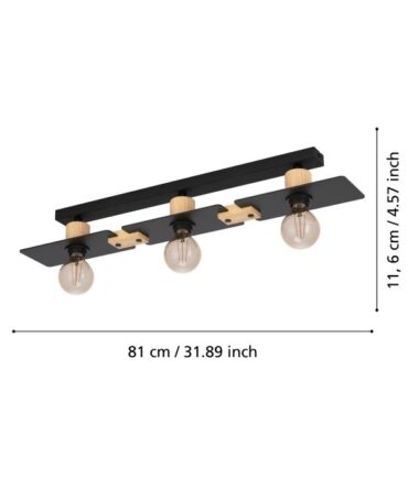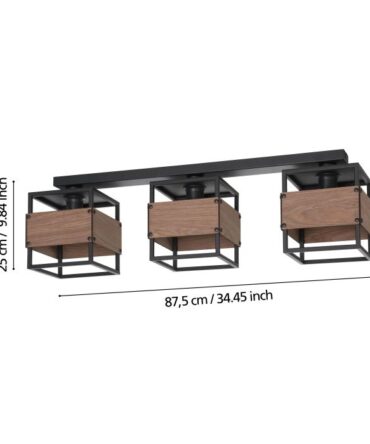 EGLO Plafoniera EVESHAM con struttura in metallo nero e legno marrone, H. 25 e L. 87,5 cm