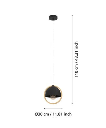 EGLO Sospensione CONSETT con struttura in acciaio nero e legno marrone, H. 110 e L. 78 cm