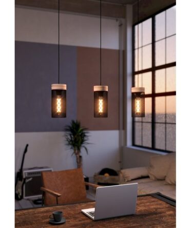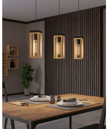 EGLO Sospensione CAWTON con struttura in metallo e legno, H. 110 cm