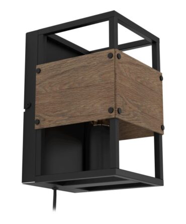EGLO Lampada da parete CAWTON con struttura in metallo e legno, H. 19,5 cm