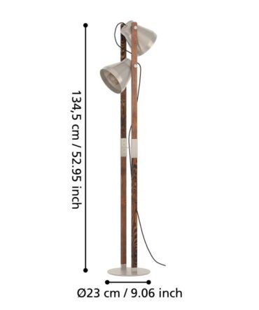 EGLO Piantana CAWTON con struttura in metallo e legno, H. 134,5 cm
