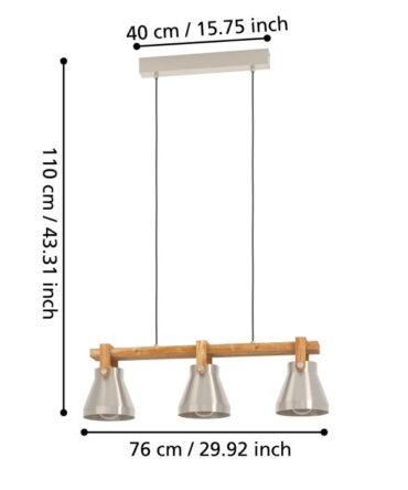 EGLO Sospensione CAWTON con struttura in metallo e legno, H. 110 e L. 76 cm