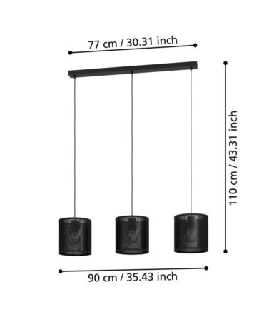 EGLO Sospensione RINROE con struttura in acciaio nero L. 90 cm