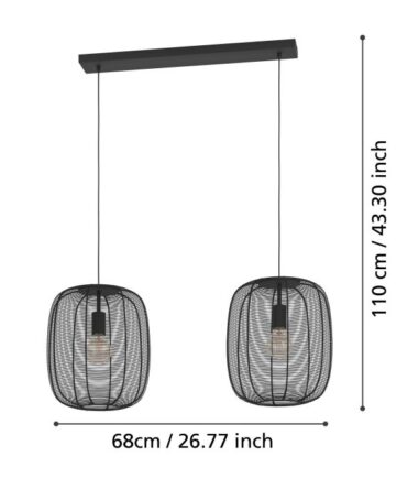 EGLO Sospensione MAMBY con struttura in acciaio nero l. 90 cm