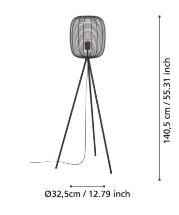 EGLO Piantana RINROE con struttura in acciaio nero H. 140,5 cm