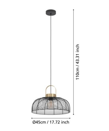 EGLO Sospensione ROUNDHAM con struttura in acciaio nero e ottone D. 45 cm