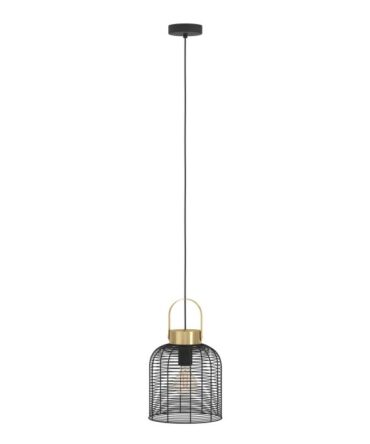 EGLO Sospensione ROUNDHAM con struttura in acciaio nero e ottone D. 22 cm
