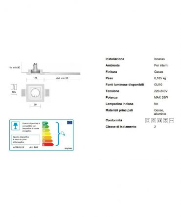 Faretto Incasso In Gesso Quadrato Horus GFA591 Gea Led
