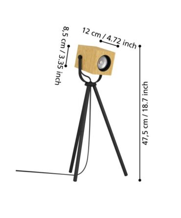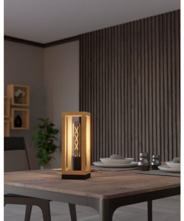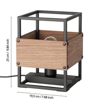 EGLO Lampada da tavolo PRESTWICK 2 con struttura in legno, finitura nera H. 9,5 cm