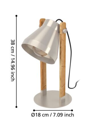 EGLO Lampada da tavolo CAWTON con struttura in metallo e legno, H. 38 cm