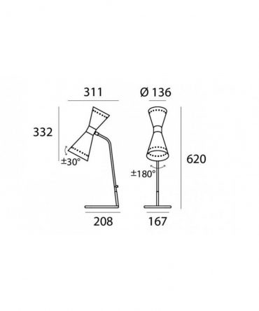 Lume Da Tavolo Megafono Doppia Emissione Oro Avorio Stilnovo 9575