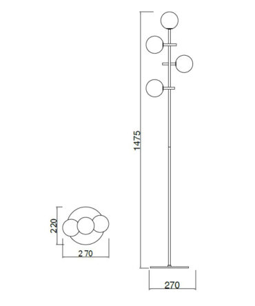 MANTRA CELLAR Piantana nera a 4 luci L. 27cm H. 147,5 cm