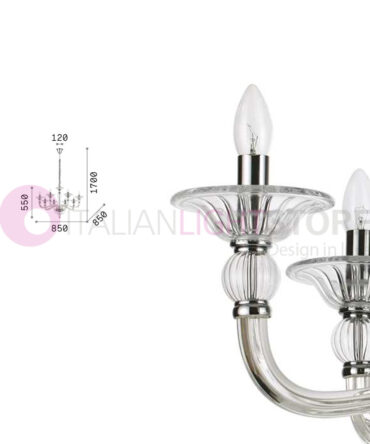Lampadario 8 Luci In Vetro Trasparente Opera Ondaluce Ciciriello