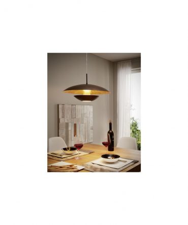 Sospensione Moderna Maserlo 2 Luci Paralume Nero E Oro Eglo