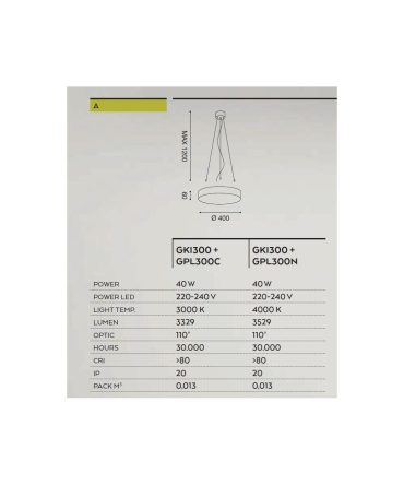 Sospensione Rotonda Ø40cm Led 40w Biham GKI300+GPL300 Gea Led