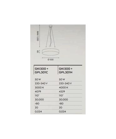 Sospensione Rotonda Ø50cm Led 50w Biham GKI300+GPL301 Gea Led