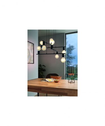 Sospensione Townshend 6 Luci Nero E Legno Naturale L100 cm Eglo