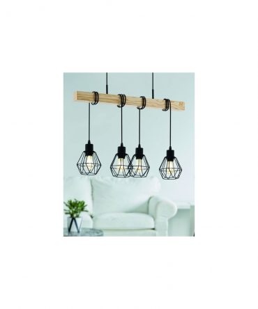 Sospensione Townshend 4 Luci Gabbia Nero E Legno Naturale L70 cm Eglo