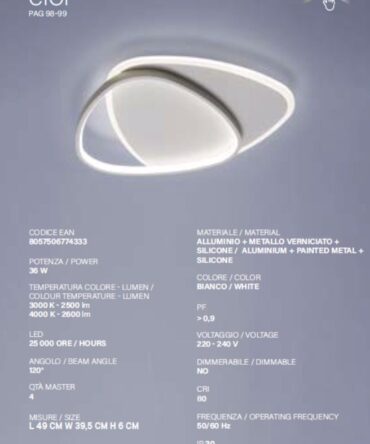 VIVIDA INTERNATIONAL Plafoniera CIOP Bianco Led 36 w