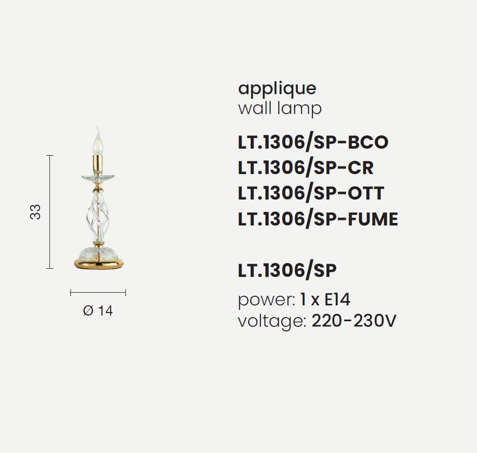• La lampada da tavolo della serie 1306 é realizzato in vetro soffiato trasparente lavorato a mano con particolari e finitura in oro.