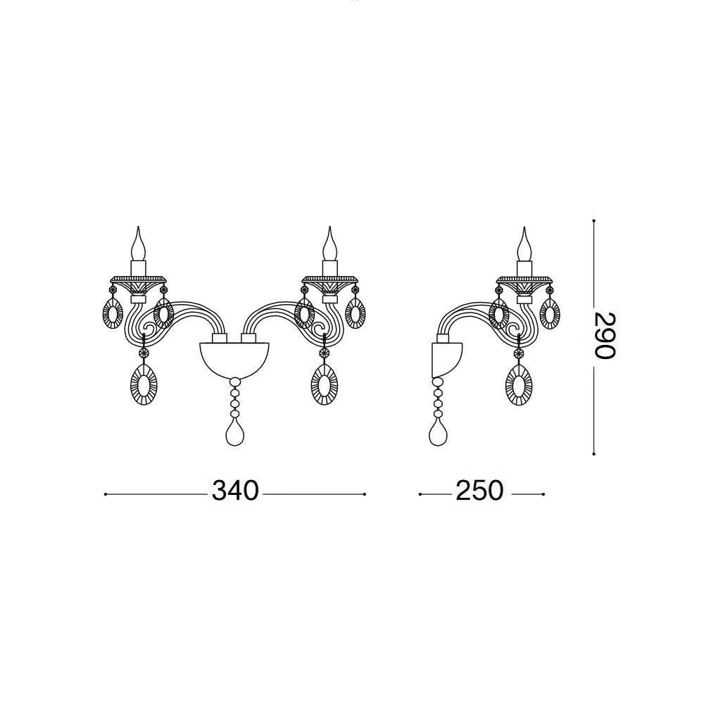 IDEAL LUX NEGRESCO AP2 Applique 2 Luci Vetro E Cristallo Oro