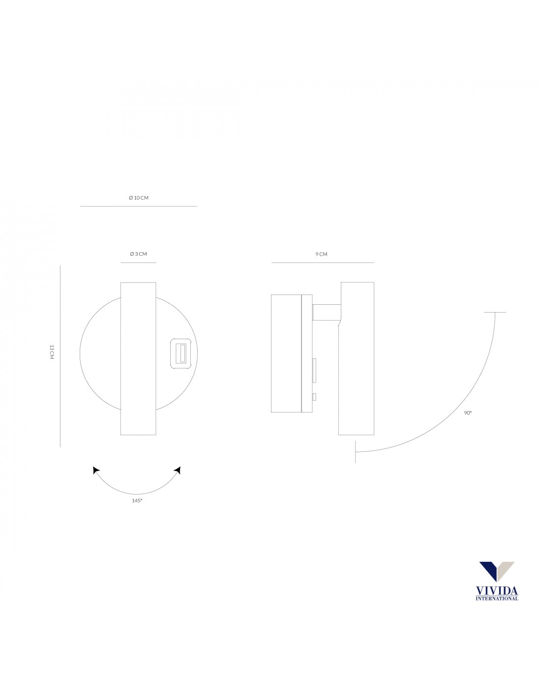 L’applique BETU del marchio VIVIDA INTERNATIONAL presenta una struttura realizzata in metallo finitura bianco, con piastra rotonda a parete e spot cilindrico orientabile.