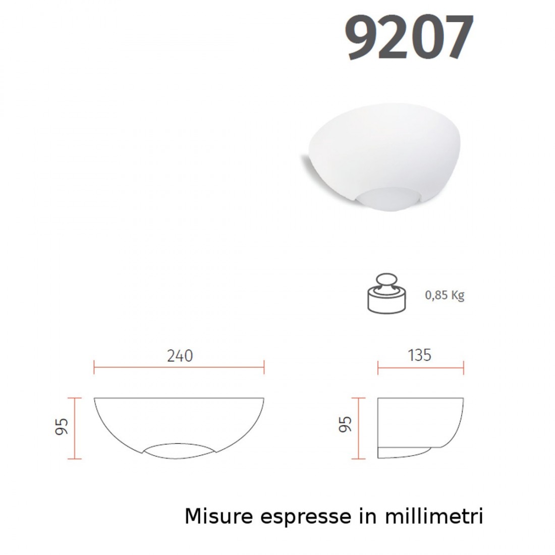 - Emissione luce: BIEMISSIONE (UP DOWN)