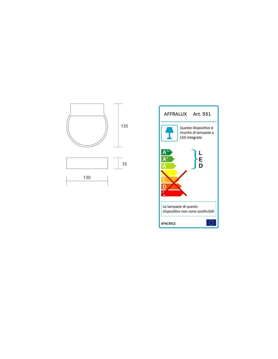 Facile l’installazione a parete grazie al supporto in metallo. Doppio fascio di luce indiretto verso il basso e verso l’alto.