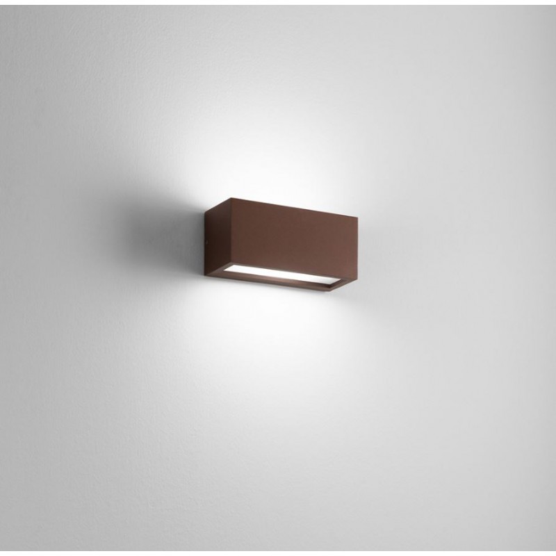 Applique per esterno modello Mètro di Isyluce, azienda leader nella produzione di articoli di illuminazione. Realizzato in alluminio colore corten finitura sabbiata, con diffusore in materiale plastico molto resistente.