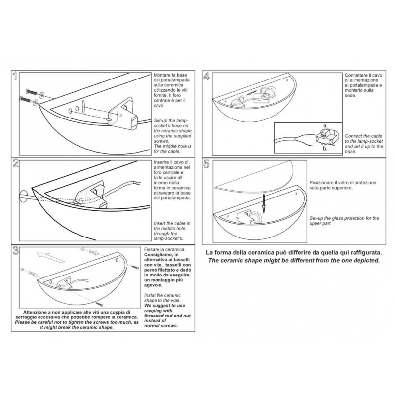 - Lampadine: 2 x E27 Led – Fluo – Alogena (non incluse)