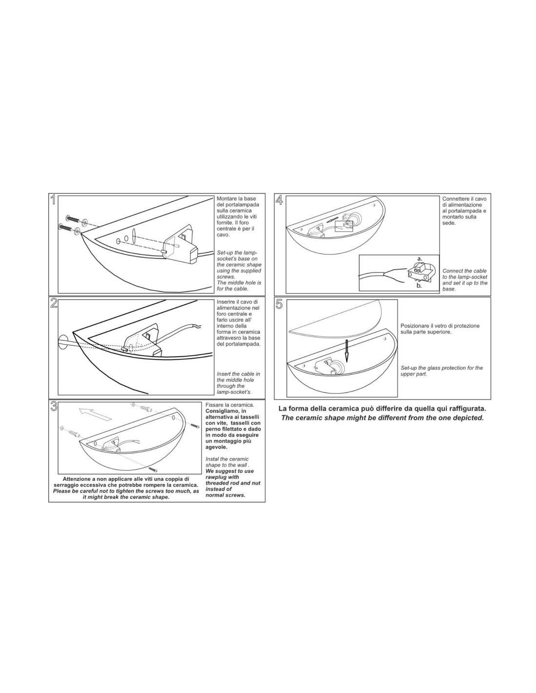 Per questo modello é possibile installare lampadine E27 a Led, fluorescenti o alogene, acquistabili separatamente.