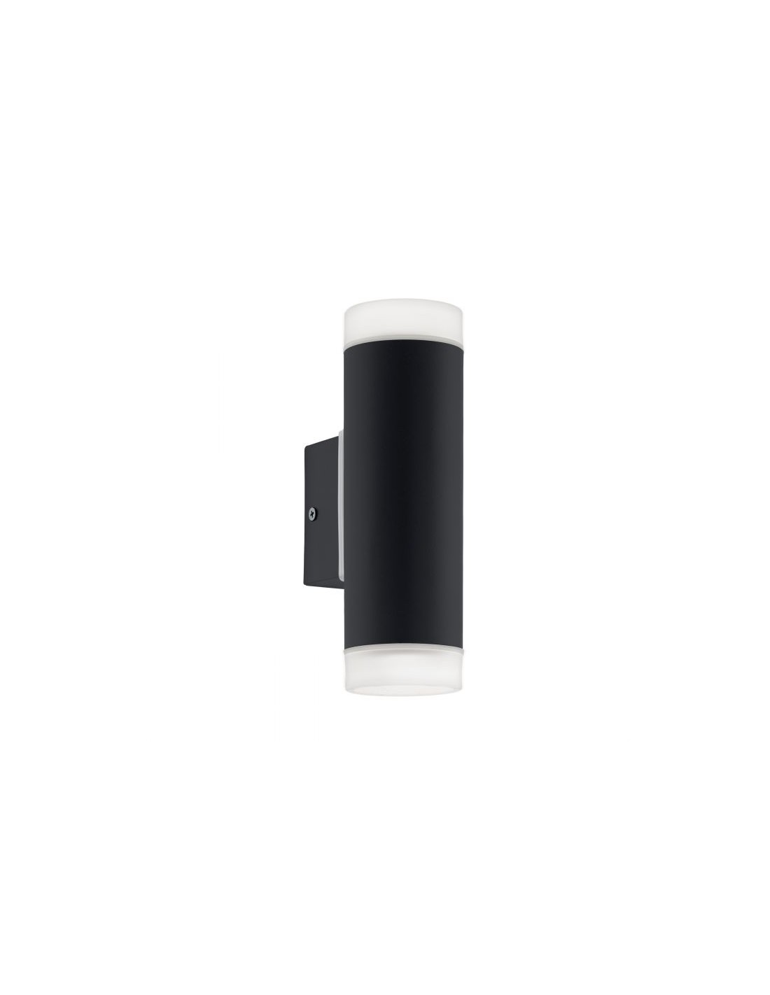 La lampada da parete RIGA del brand Eglo presenta una struttura cilindrica in metallo zincato di colore nero e doppio diffusore in policarbonato bianco satinato. Emissione di luce, verso l’alto e verso il basso.