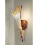 • La lampada da parete presenta una montatura in metallo e un diffusore  in vetro lavorato artigianalmente. La struttura é disponibile nelle finiture marrone antico, rosso rame o antracite, mentre il vetro in bianco anticato oppure ambra.