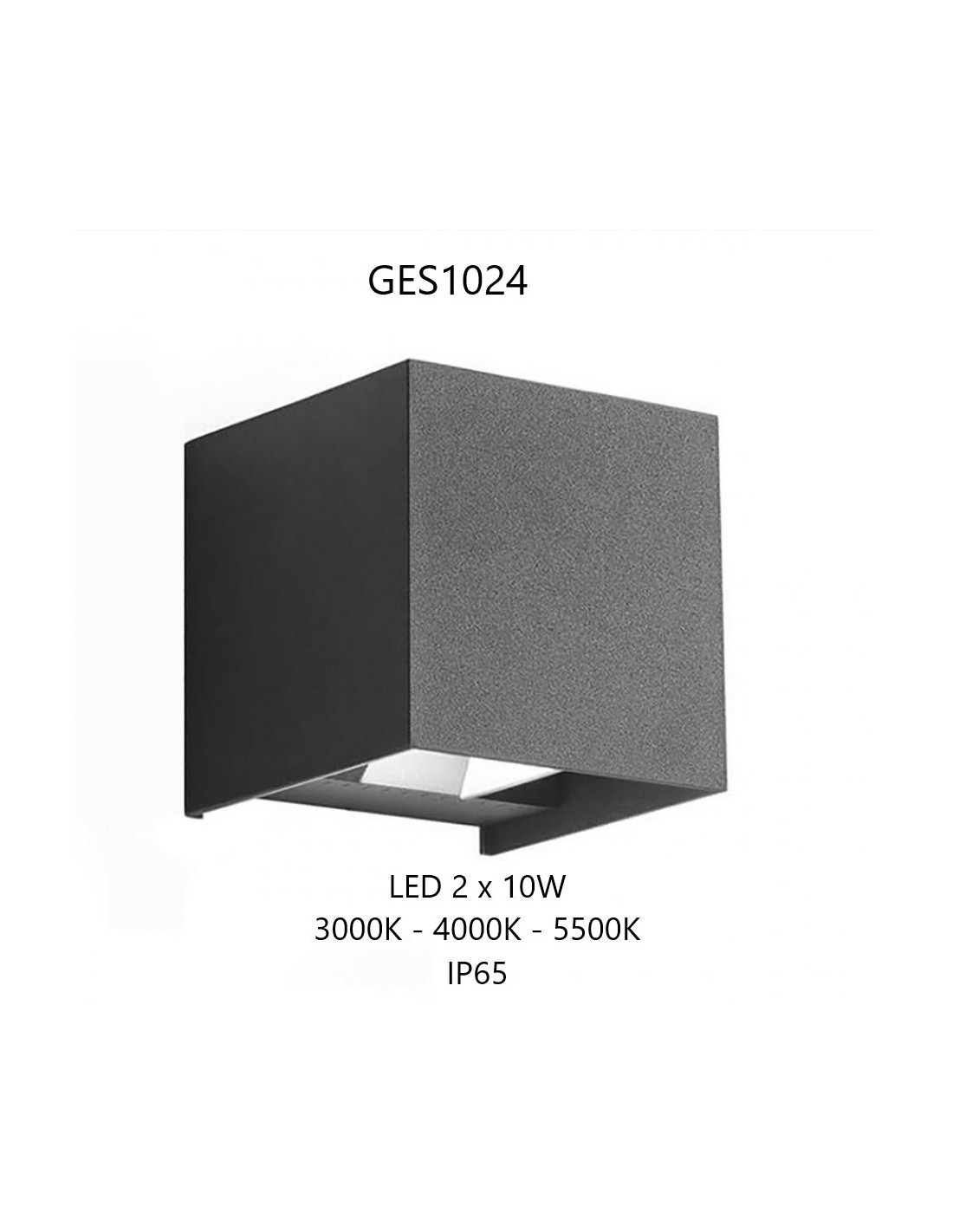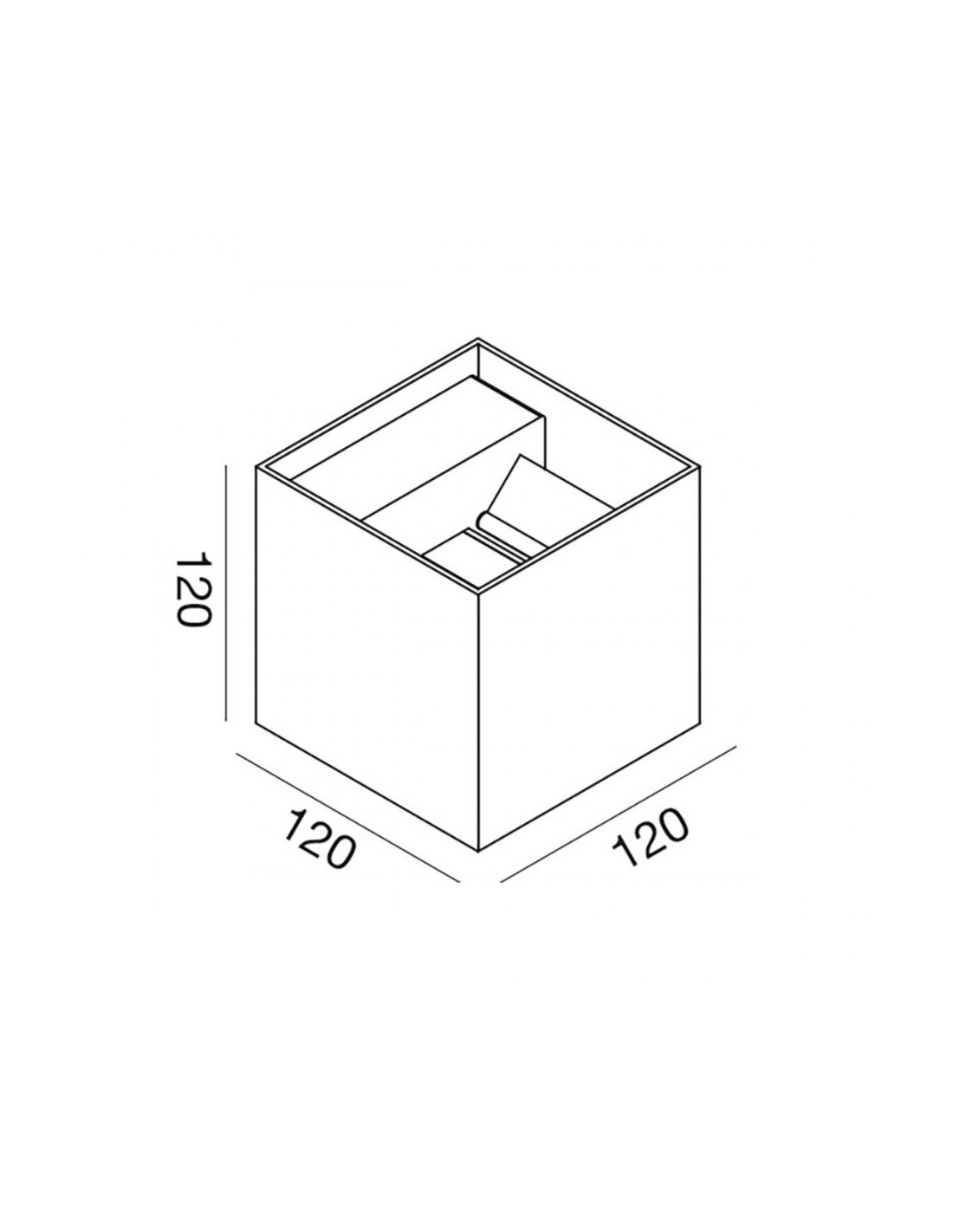 Applique biemissione ZORA a forma di cubo del brand Gea Led, realizzata interamente in alluminio pressofuso con diffusore in vetro trasparente.