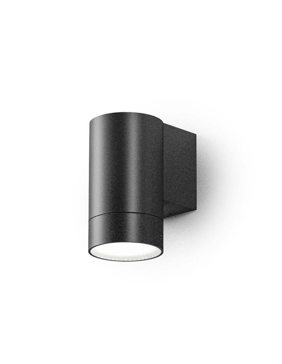 Lampada da parete per esterno modello LILY dalla forma cilindrica e dal design semplice e moderno, con struttura in alluminio e diffusore in vetro temperato trasparente.