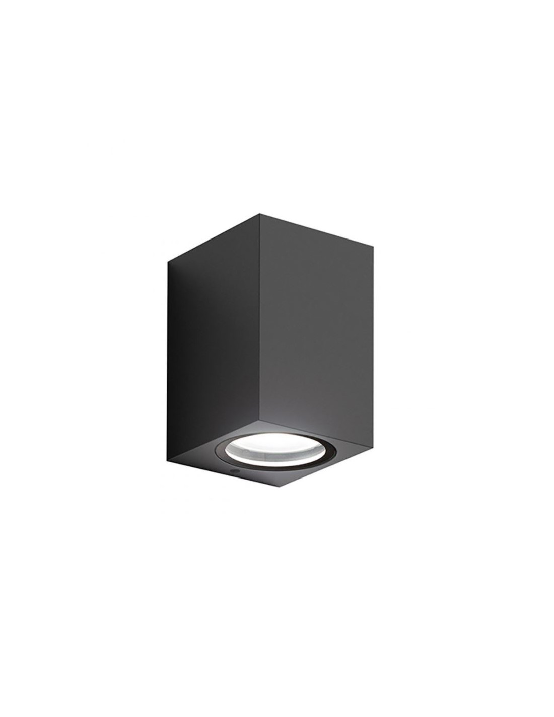 Applique da esterno del brand Gea Led realizzato interamente in alluminio pressofuso dalla forma squadrata, con diffusore in vetro trasparente.