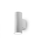 Lampada da parete per esterno modello LILY (IP54) dalla forma cilindrica e dal design semplice e moderno, con struttura in alluminio e doppio diffusore in vetro temperato trasparente.