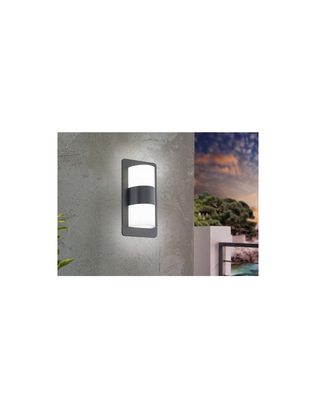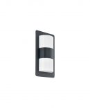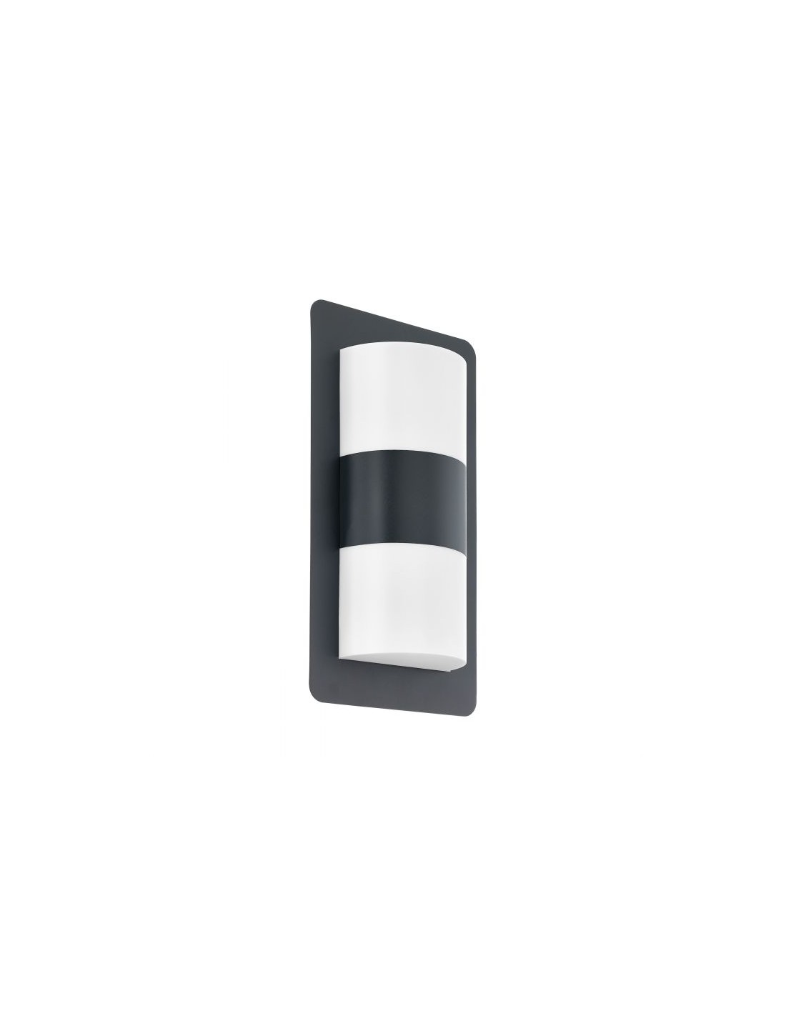 L’applique da parete CISTIERNA del brand Eglo presenta una struttura in metallo zincato finitura antracite e doppio diffusore in policarbonato bianco, doppia emissione di luce.