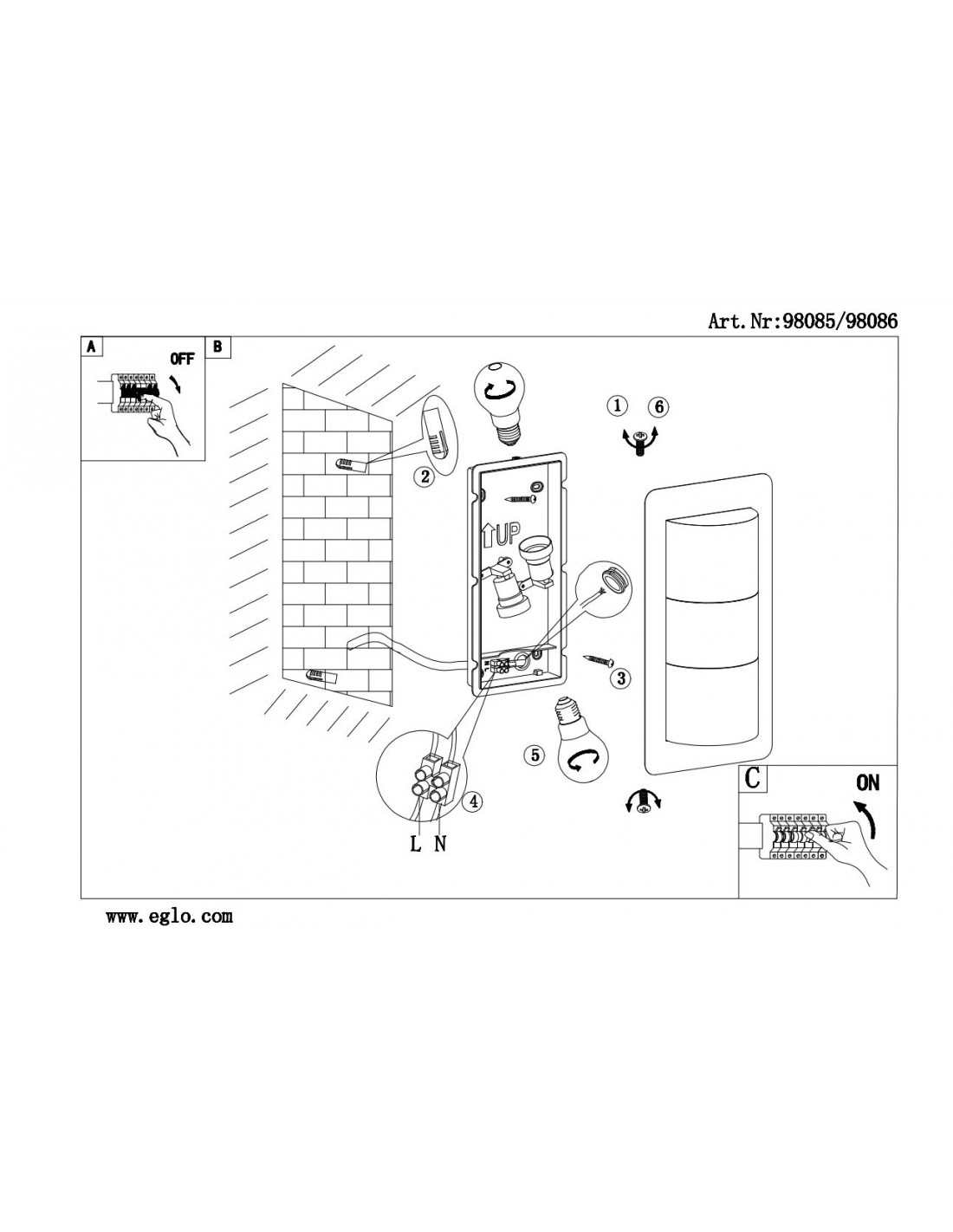 È possibile installare 2 lampadine con attacco E27, ognuna da max 10 watt, acquistabili separatamente. Le lampadine Led di ultima generazione garantiranno un’ottima resa luminosa e al contempo un basso consumo energetico. La luce viene emessa in una doppia direzione, sia verso l’alto che verso il basso.