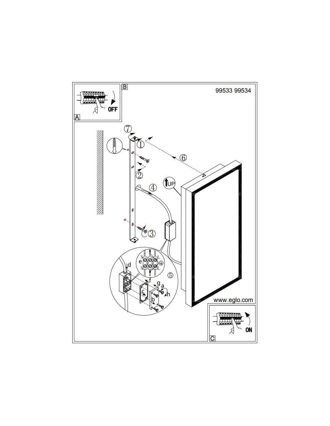 La lampada da parete della collezione CASAZZA del brand EGLO presenta una struttura rettangolare in metallo zincato di colore nero e diffusore in policarbonato bianco.
