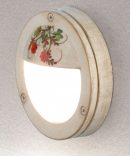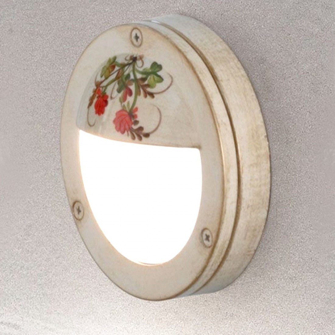 • Diffusore in policarbonato opaco. Struttura in alluminio verniciato bianco-oro e dec. (43 DEC. TRS). A richiesta altri colori di finitura e decori dipinti a mano o senza alcun decoro. Per richiedere una composizione diversa da quella in foto è sufficiente indicare il decoro oppure la finitura colore della montatura richiesta utilizzando l’apposito campo (lascia un messaggio) presente in fase di ordine o tramite e-mail(con tempi di consegna previsti di circa un mese). L’applique ha un peso di 0.60 Kg, un diametro di 14.5 cm e una sporgenza di 5.5 cm. L’applique ha una tensione a 220/240V (quindi non necessita di alimentatore), ha un grado di protezione IP44 quindi adatto ad ambienti esterni (protetto contro corpi solidi superiori ad 1mm di diametro e protetto contro gli spruzzi d’acqua da tutte le direzioni). L’applique è provvisto di un portalampade attacco G9 per alogena max. 25W oppure led. La tonalità di luce si sceglie tra: 2700°K/3200°K luce calda, 3700/4200 luce naturale o 4800/5200°K luce fredda. L’istallazione è prevista con tasselli (non inclusi) per fissaggio a muro o cartongesso mentre con viti autofilettanti per pareti in legno. Per quanto riguarda la manutenzione risulta estremamente semplice necessitando di semplice panno per togliere la polvere in eccesso. Made in Italy. Studio e progettazione by FERROLUCE. Lampade escluse.