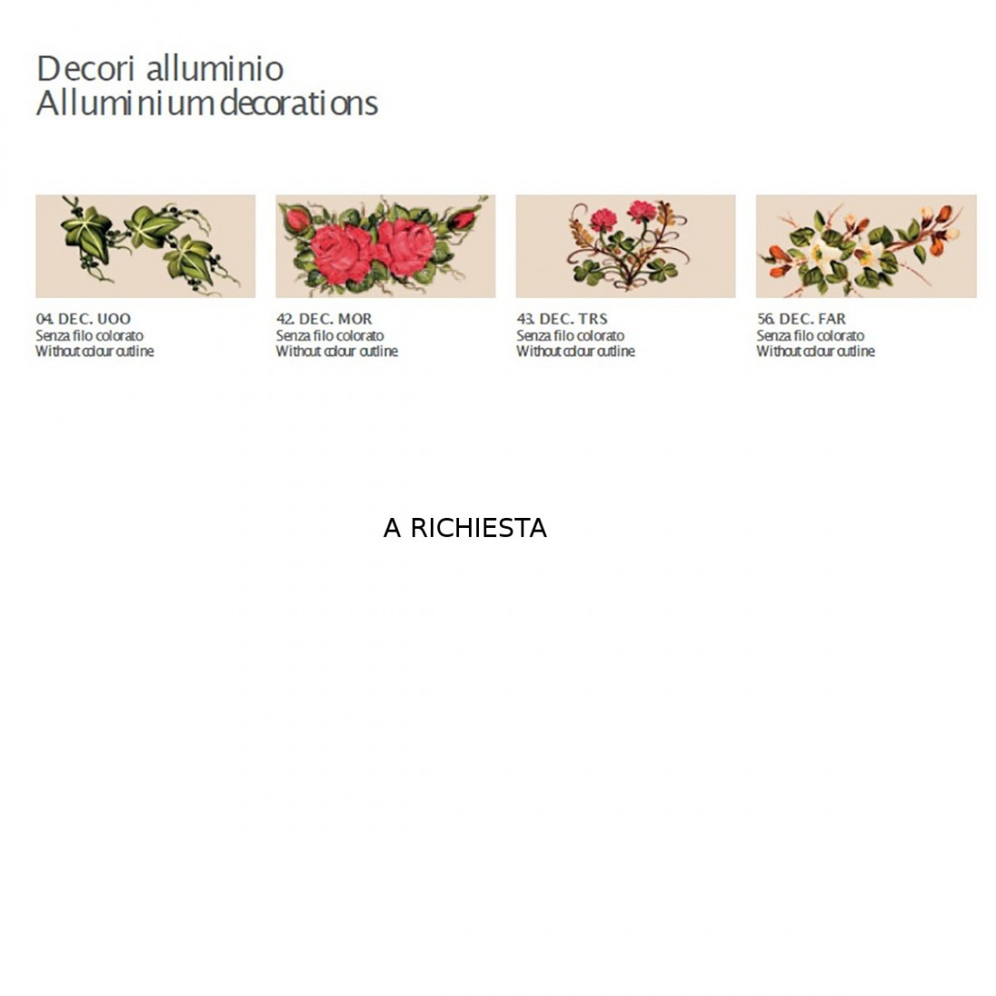 - Materiale: Alluminio verniciato bianco-oro con o senza decoro (a richiesta colori campioni). Decoro 04-dec-U come foto