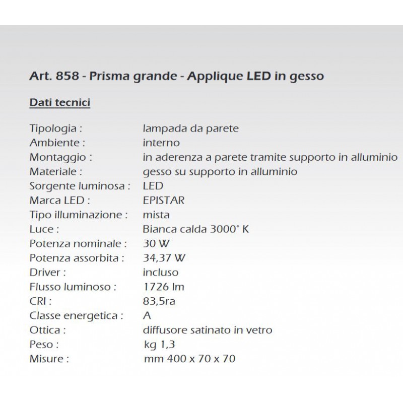 Applique Gesso Prisma LED 30W 3000°k 40cm Verniciabile Isyluce 858