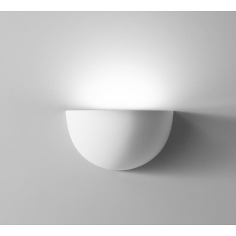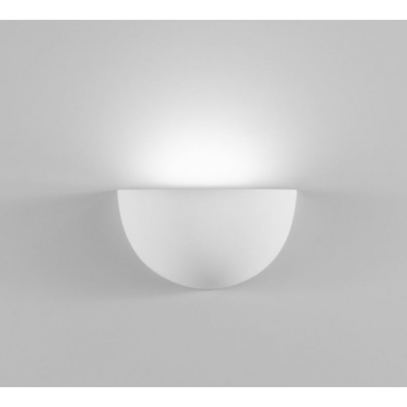 Applique modello QUARTO con struttura in gesso a forma di mezza luna e diffusore satinato in PMMA rimovibile per un’illuminazione verso l’lalto.