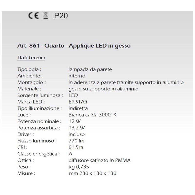 - Tipologia prodotto: Applique da parete