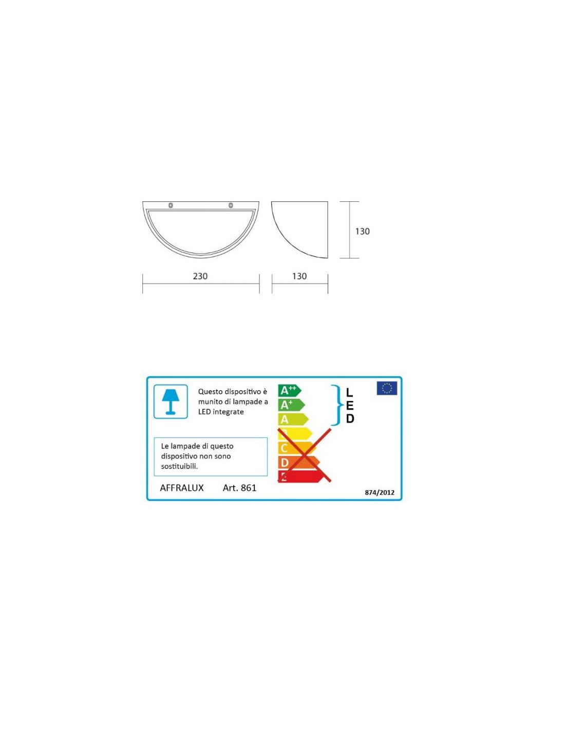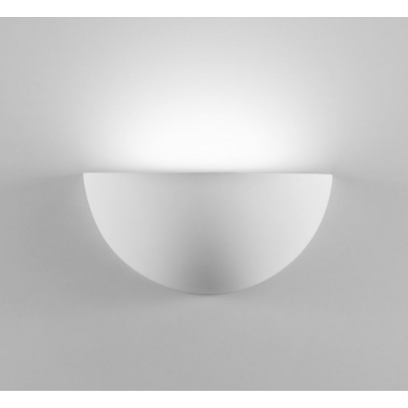 Applique modello QUARTO con struttura in gesso a forma di mezza luna e diffusore satinato in PMMA rimovibile per un’illuminazione verso l’lalto.